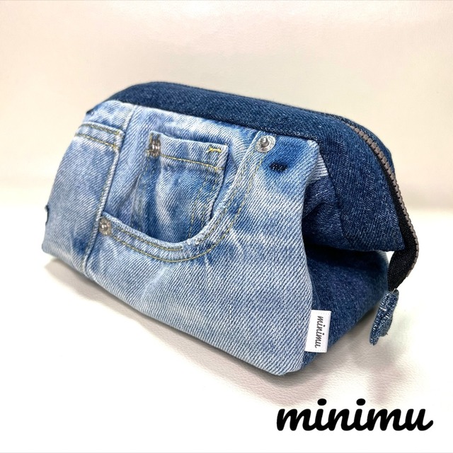 【no.205 wire pouch】 ユーズドのジーンズをリメイクしたワイヤーポーチです。 ファスナーの下にワイヤー口金が入っているので、口が大きく開き、中身の出し入れがラクです。 内側はキルティングを使用しています。 ファスナーを開けたままで、バッグインバッグとしても使用できます。 ▶︎サイズ(ファスナーを閉じた状態で計測) 縦 約12cm 横 約18cm マチ 約12cm ・ポケット 本体内側に1つ (本体表側のポケットはデザインとして使用している為、物を入れるのには適していません) ☆古着のジーンズをリメイクしている為、古着特有のダメージや塗料の付着などがある箇所もございます。 ☆1つ1つハンドメイドで作っている為、記載のサイズから若干の誤差がある場合がございます。 予めご了承ください。 ☆家庭用ミシンを使ったハンドメイド作品となります。 気を付けてはおりますが、縫い直しや縫い目の歪みなどがある場合がございます。 完璧を求める方や神経質な方はご遠慮ください。 ☆お使いのブラウザにより実際の色とは違って見える場合がございます。