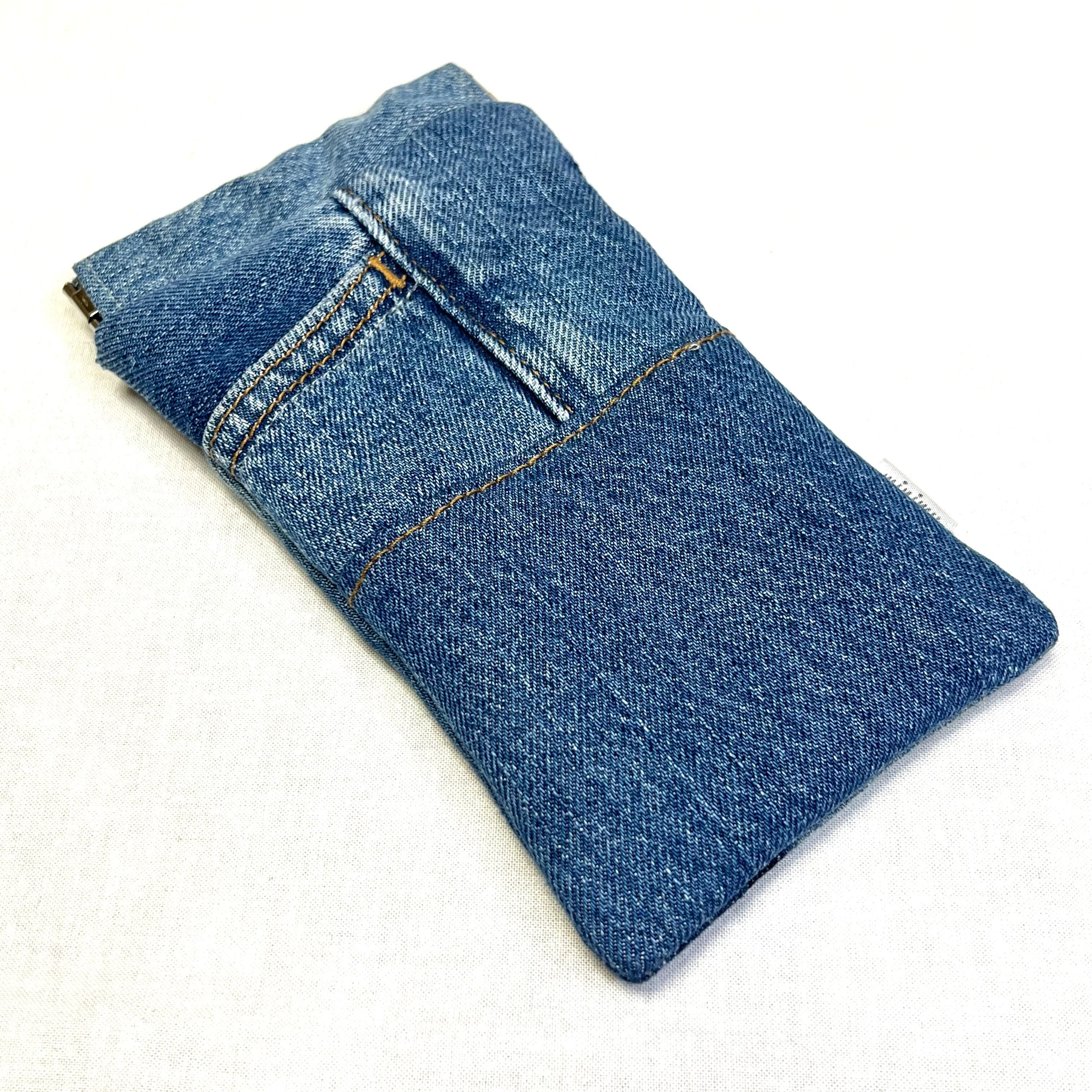 ユーズドのジーンズをリメイクしたメガネケースです。