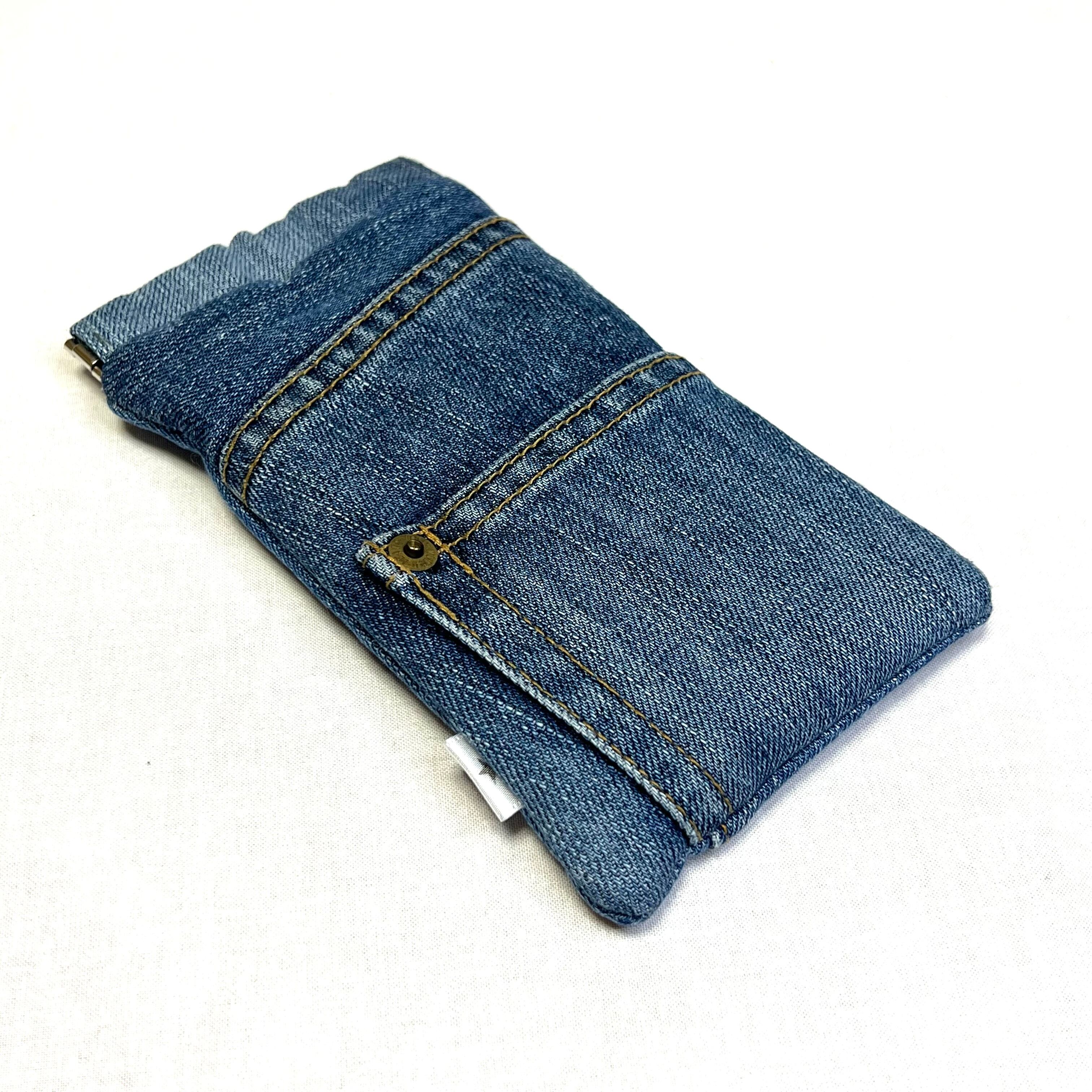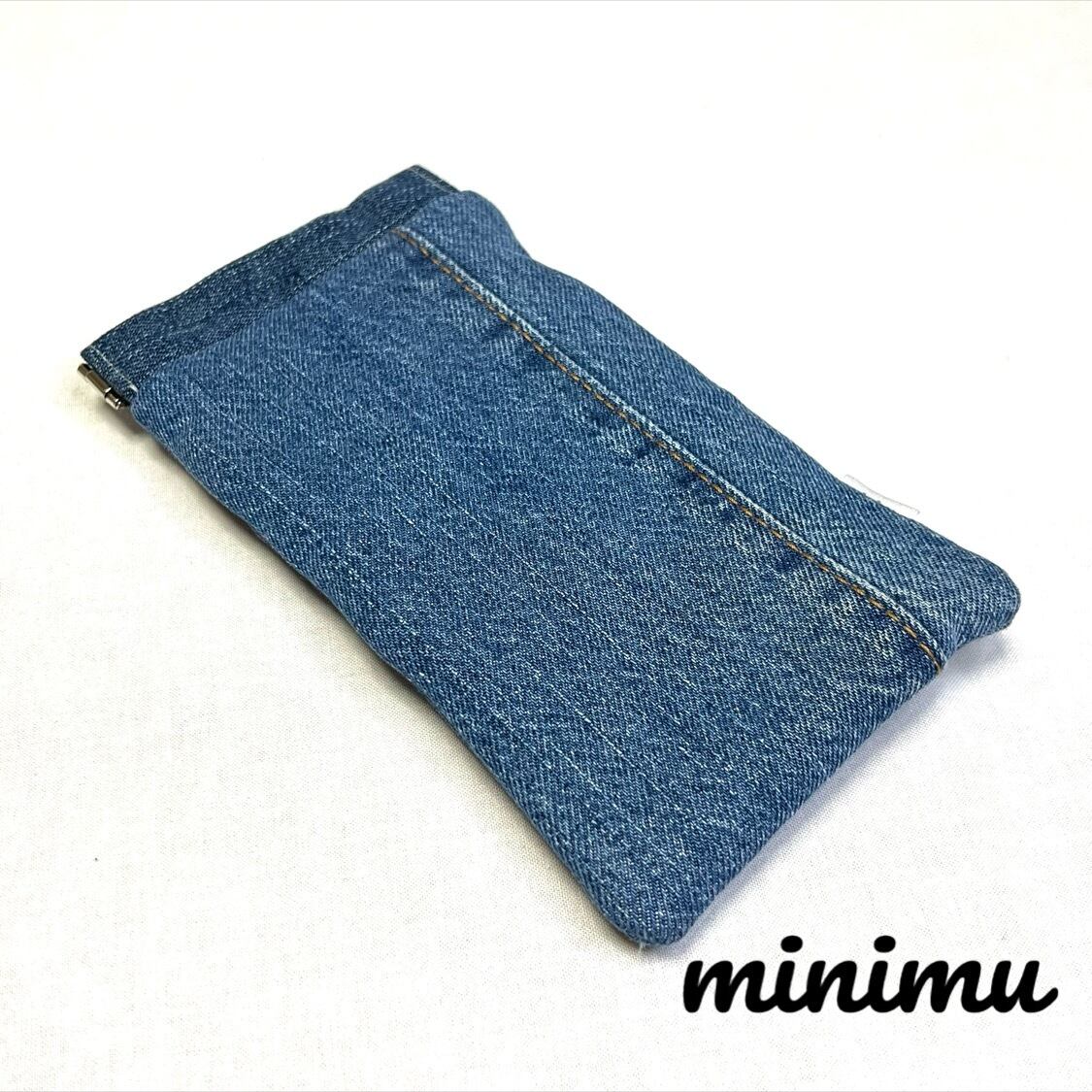 ユーズドのジーンズをリメイクしたメガネケースです。