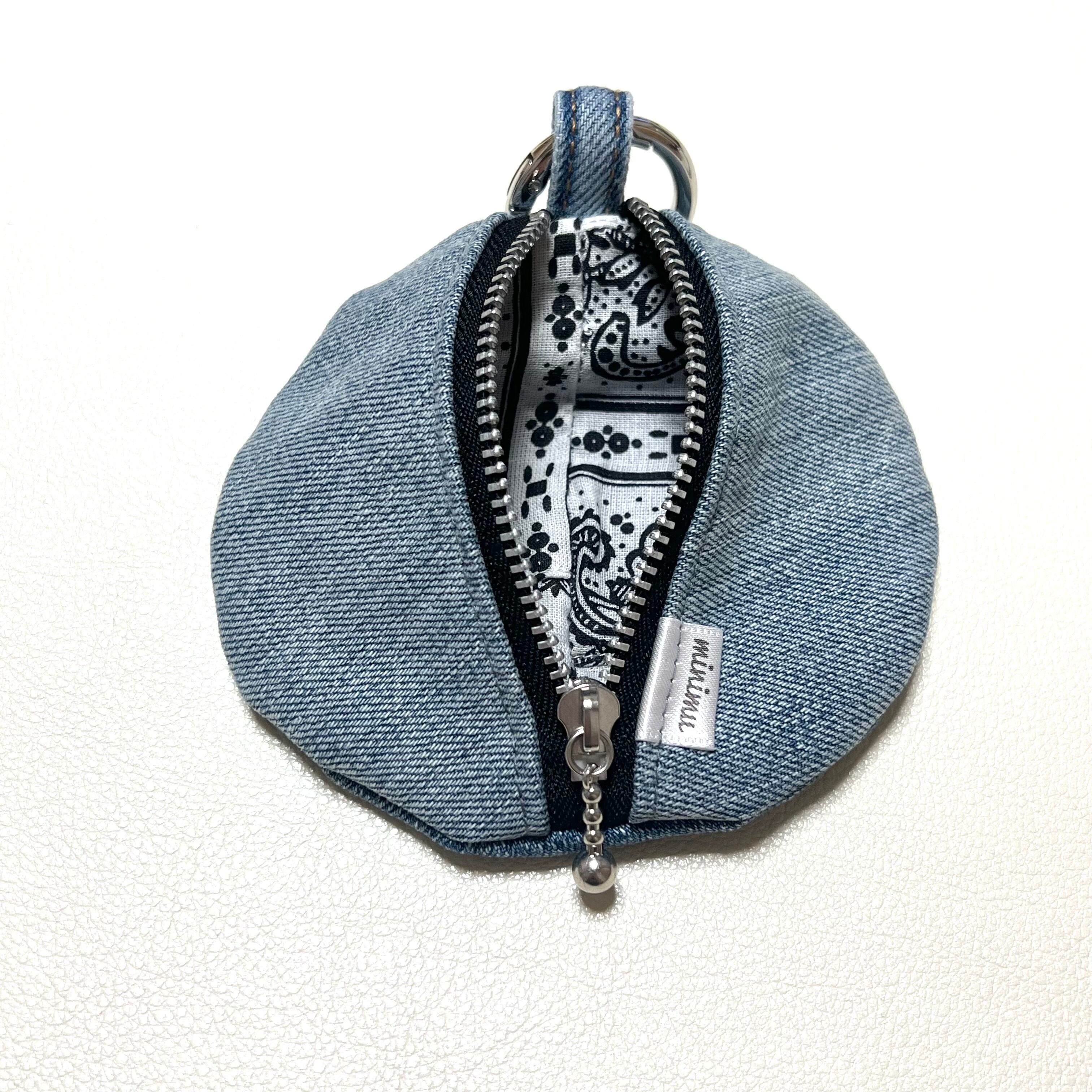 ユーズドのジーンズをリメイクしたファスナーポーチです。