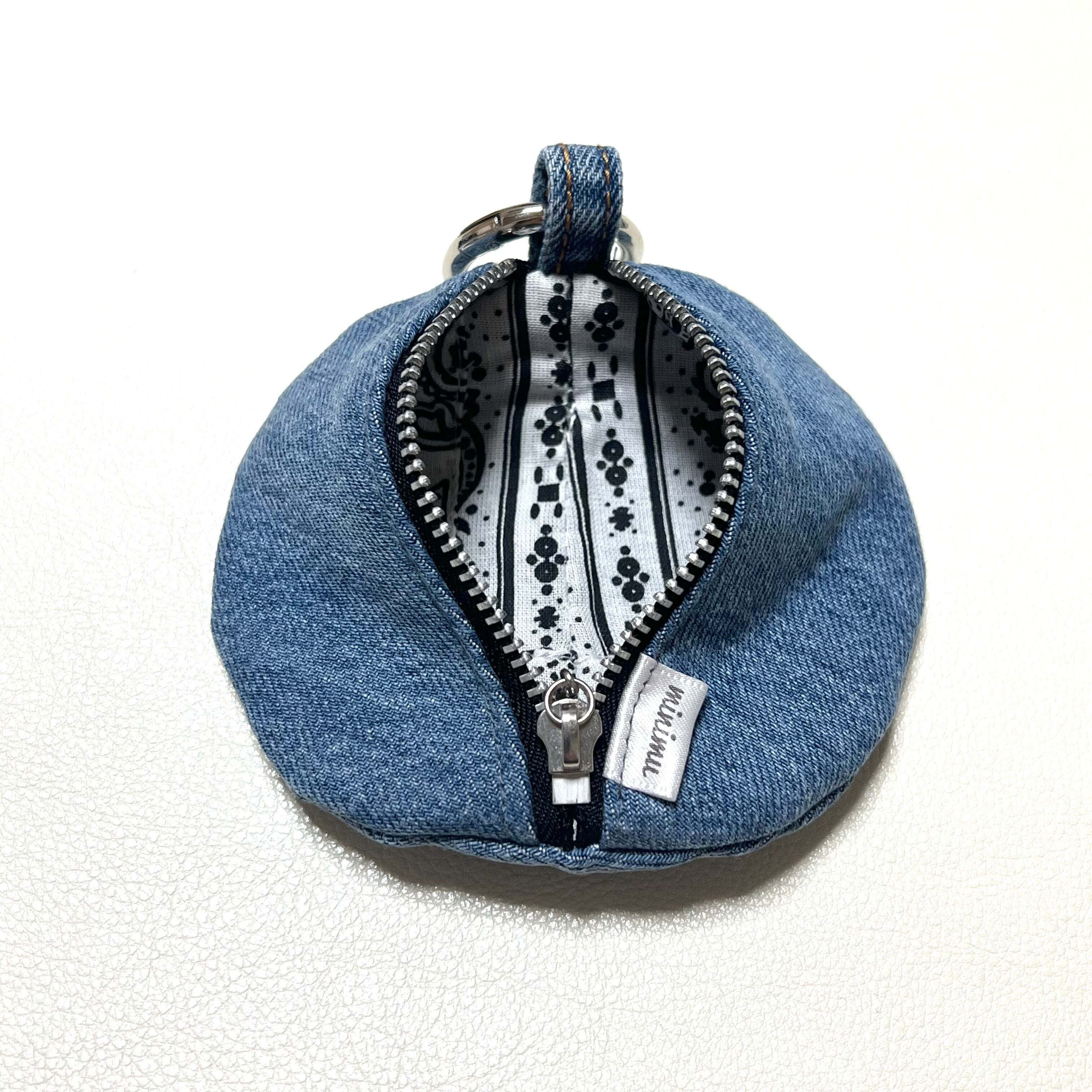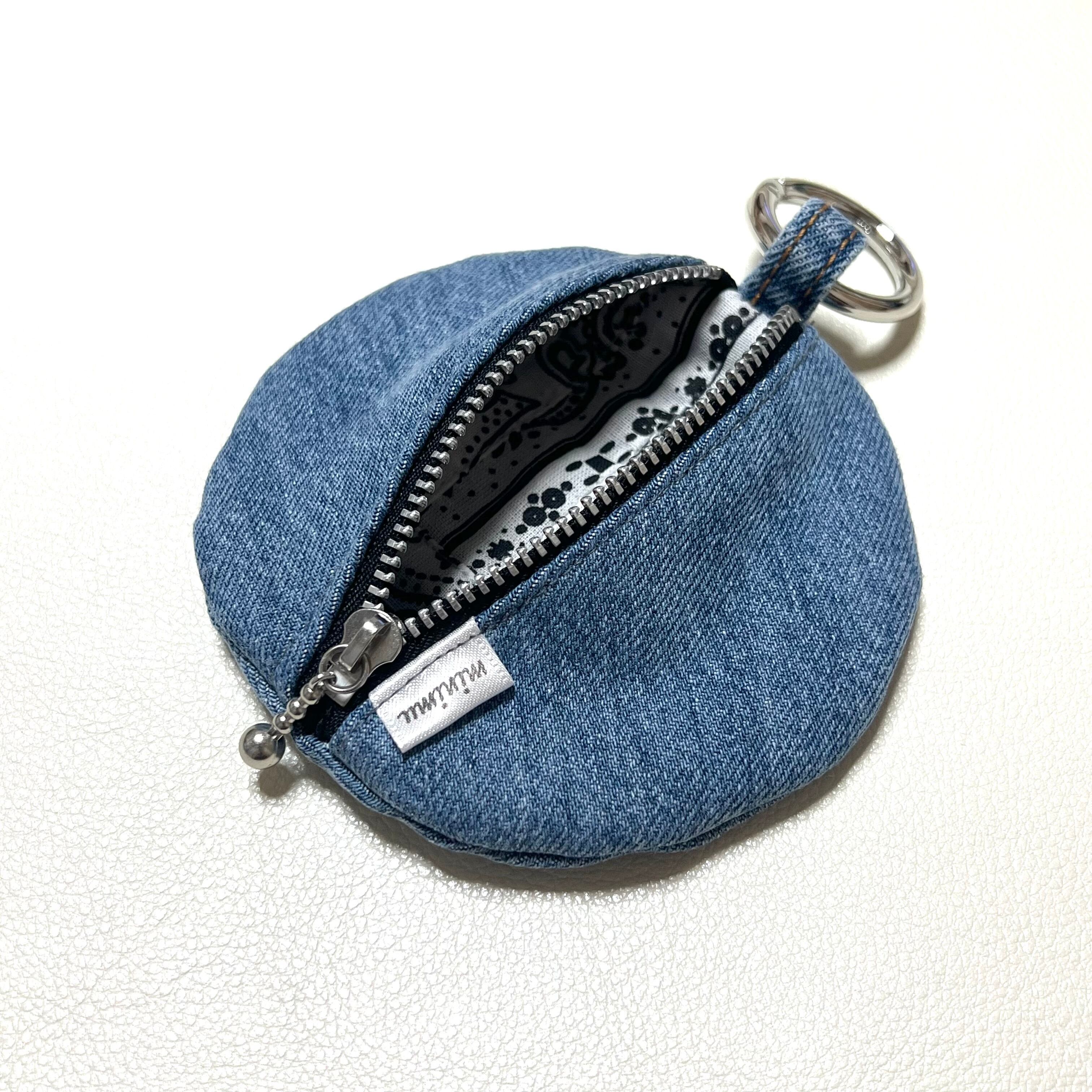 ユーズドのジーンズをリメイクしたファスナーポーチです。