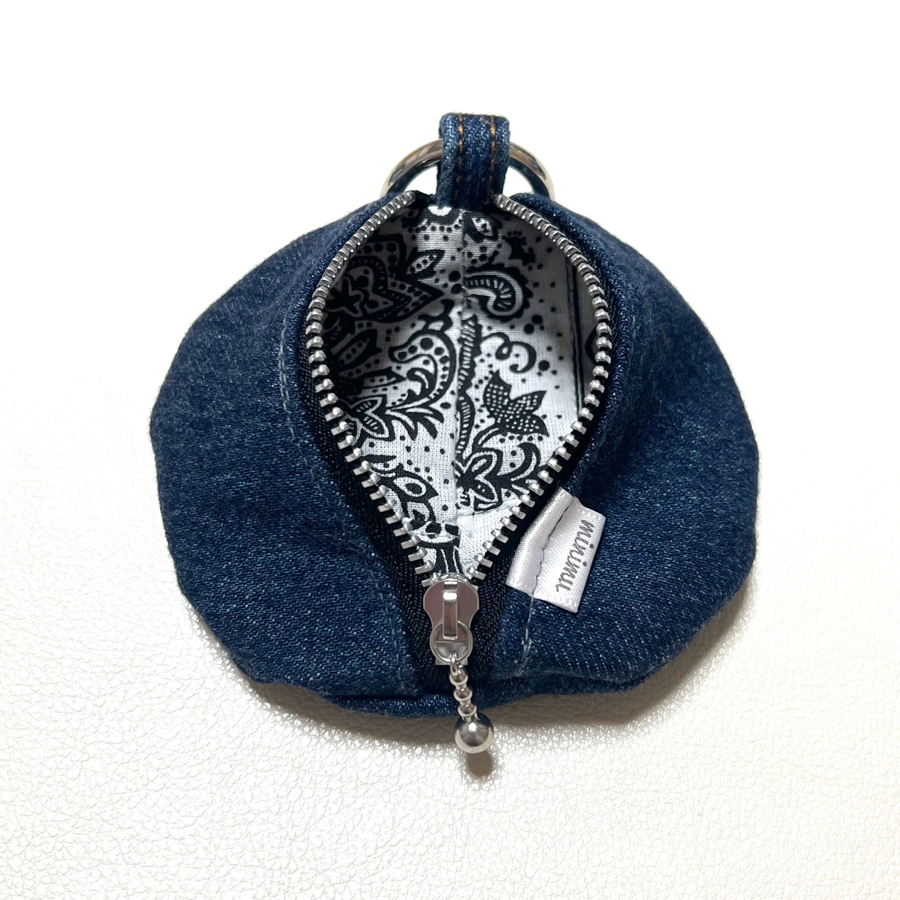 ユーズドのジーンズをリメイクしたファスナーポーチです。