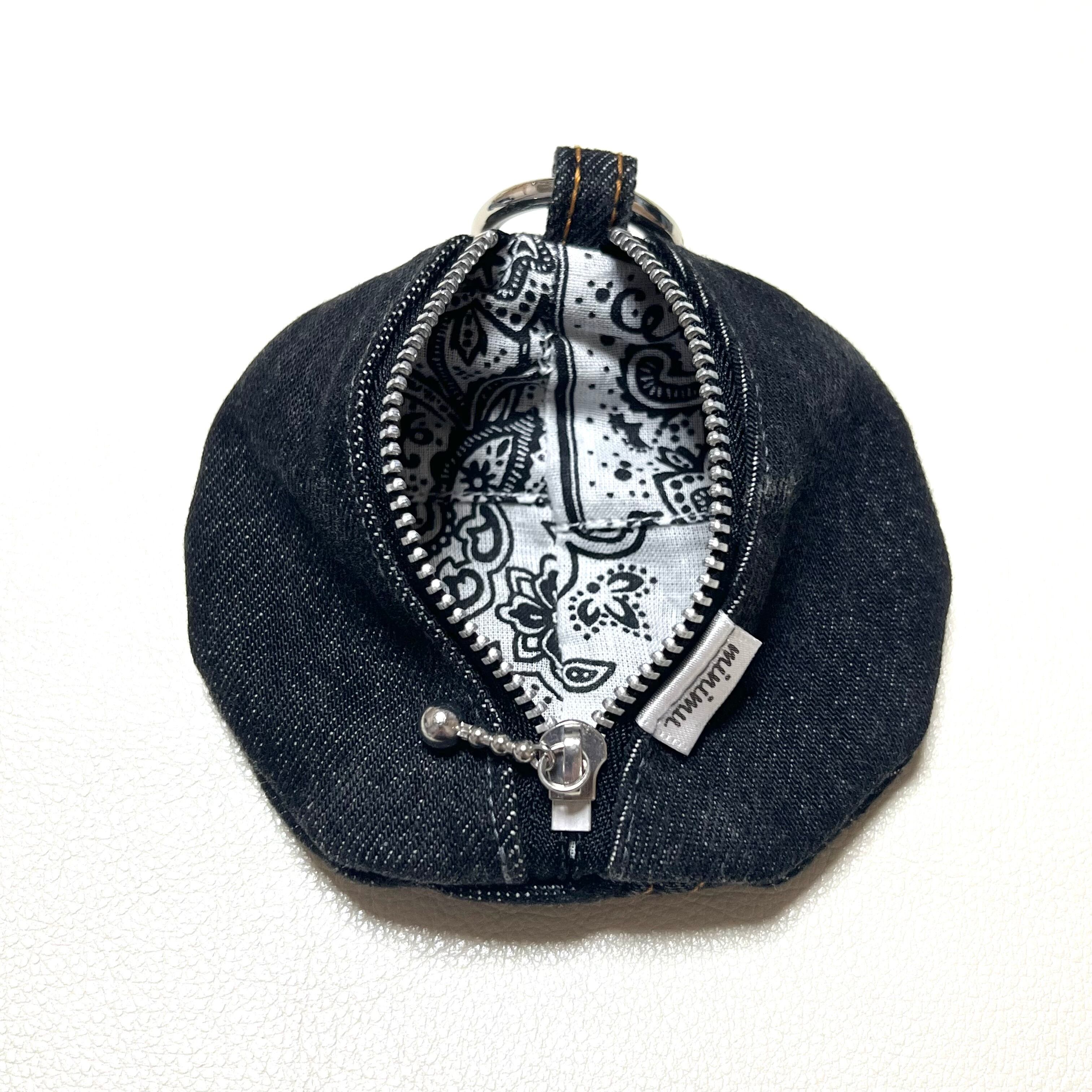 ユーズドのジーンズをリメイクしたファスナーポーチです。