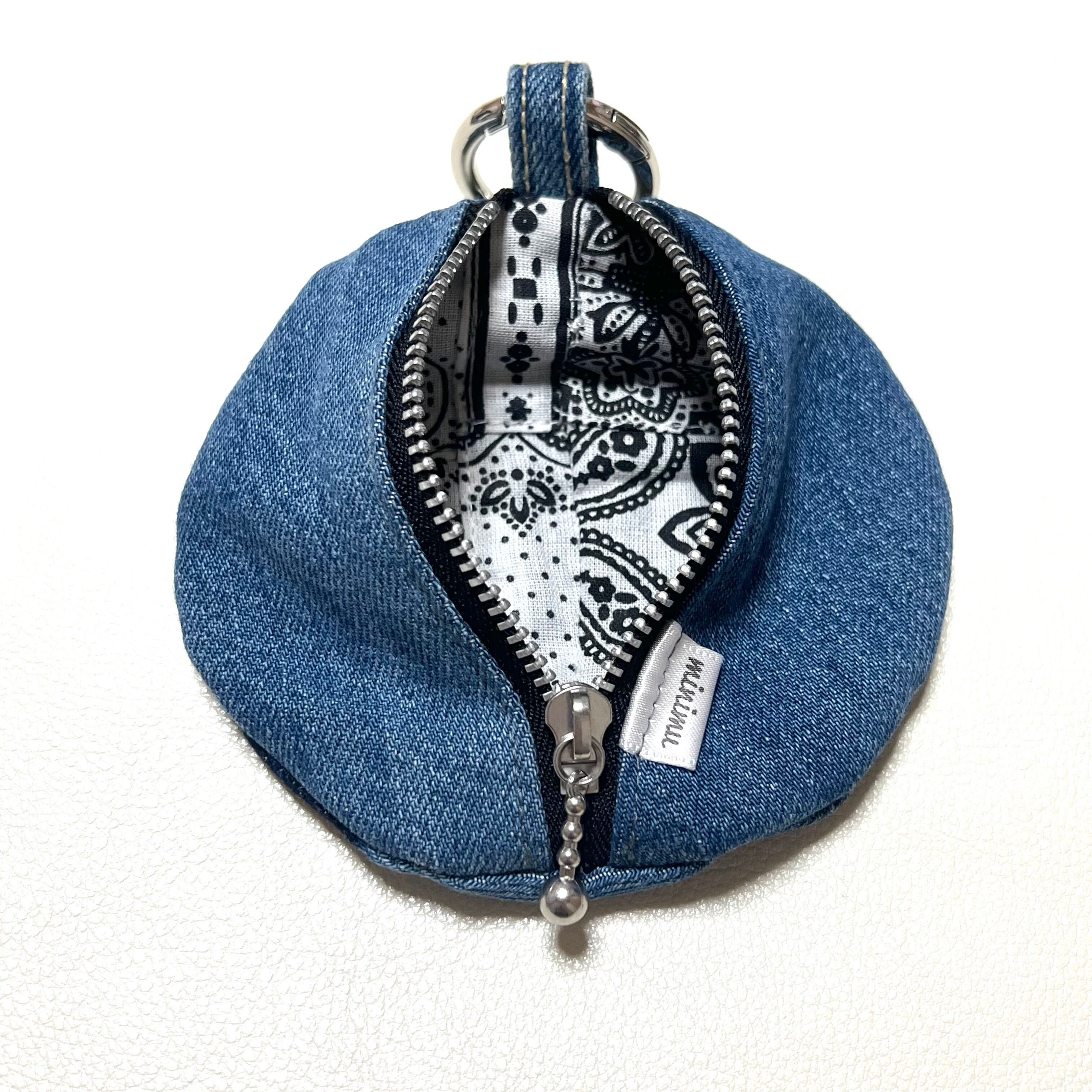 ユーズドのジーンズをリメイクしたファスナーポーチです。