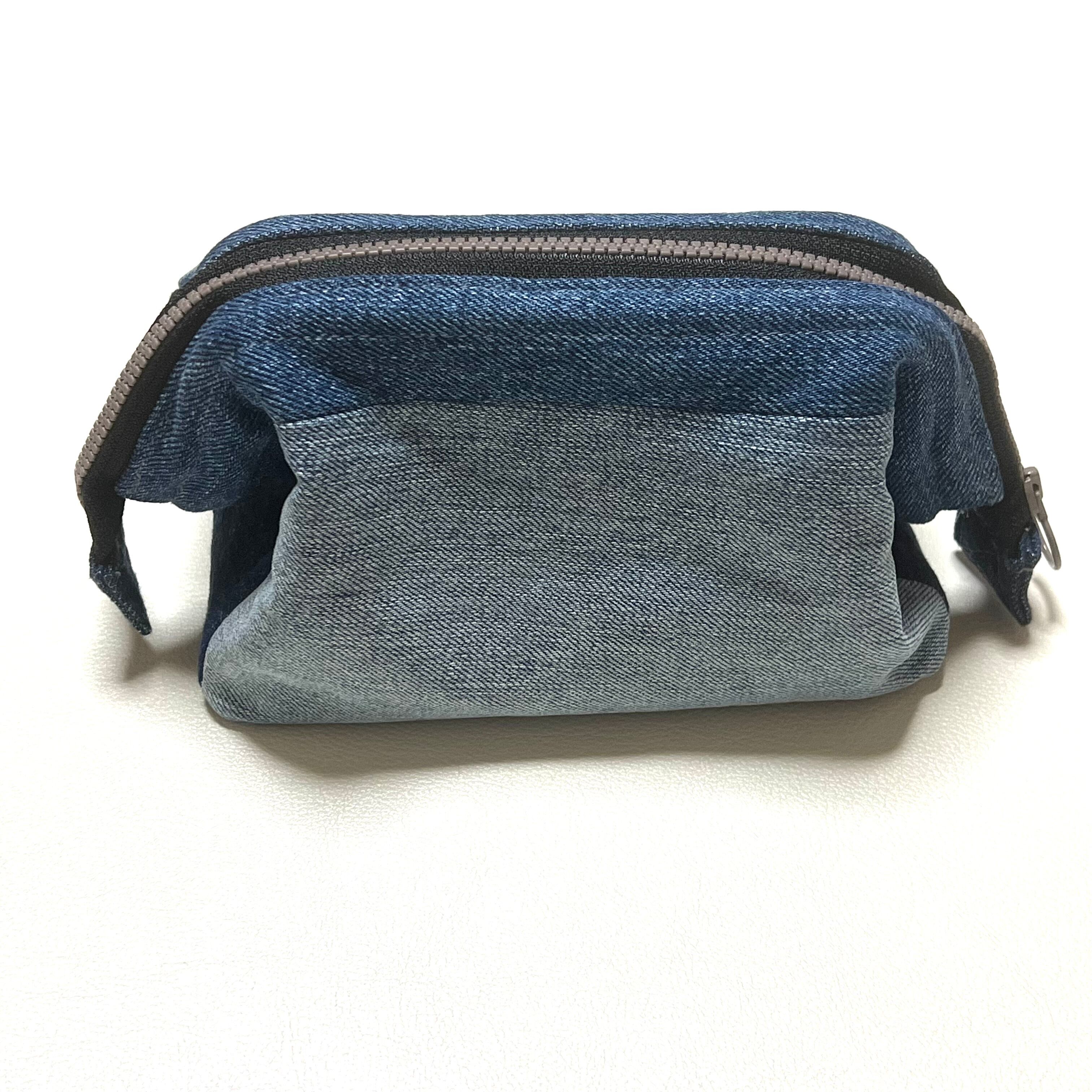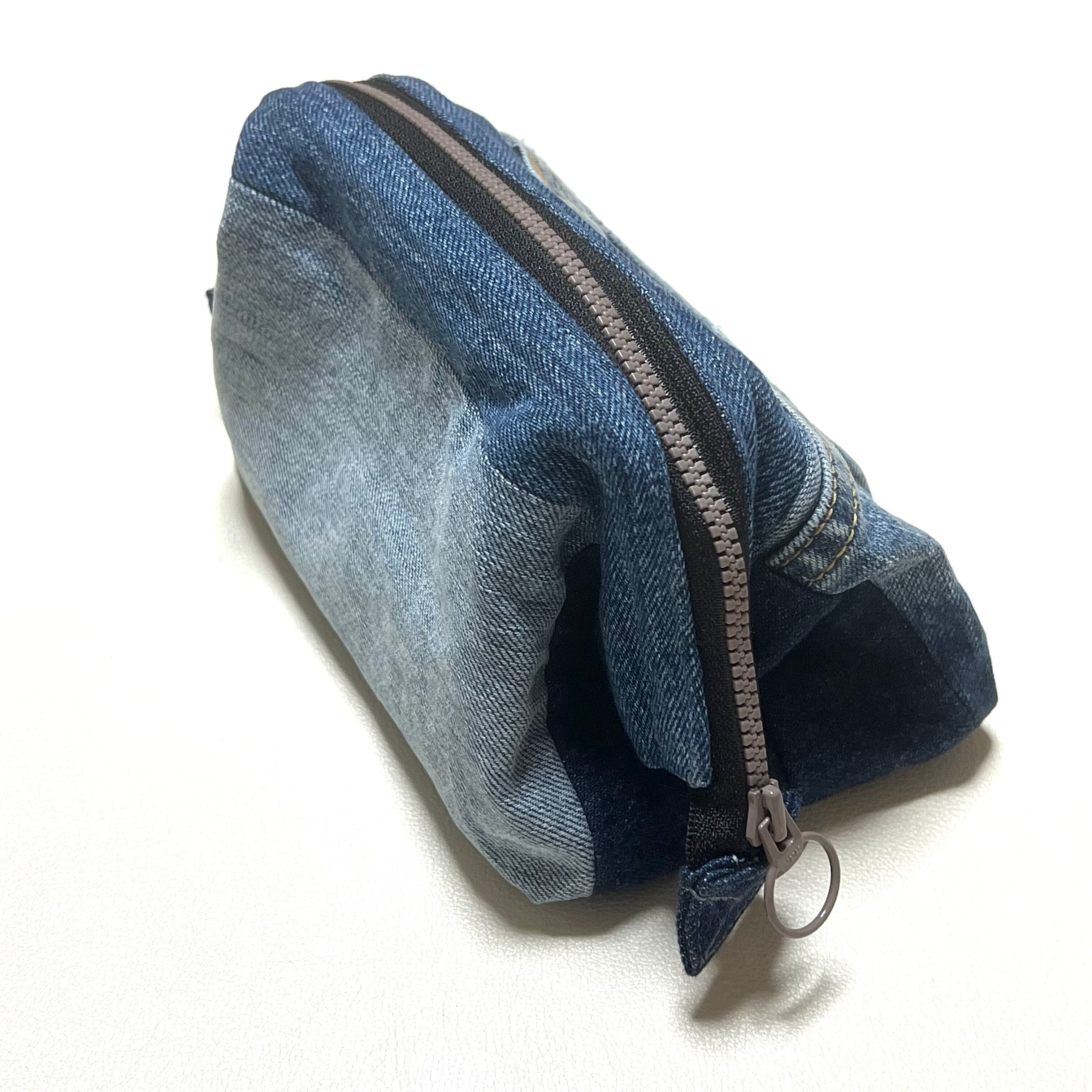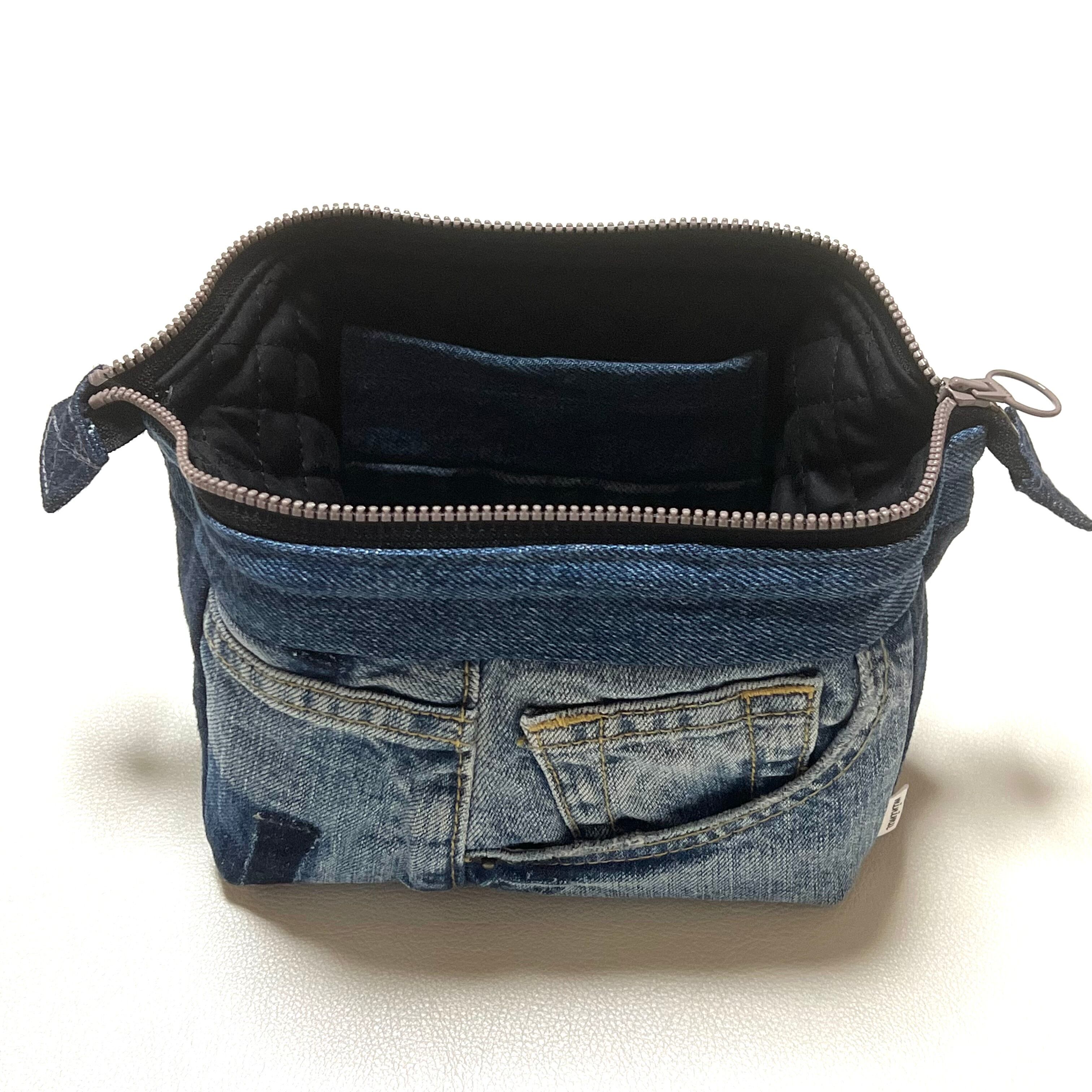 ユーズドのジーンズをリメイクしたワイヤーポーチです。