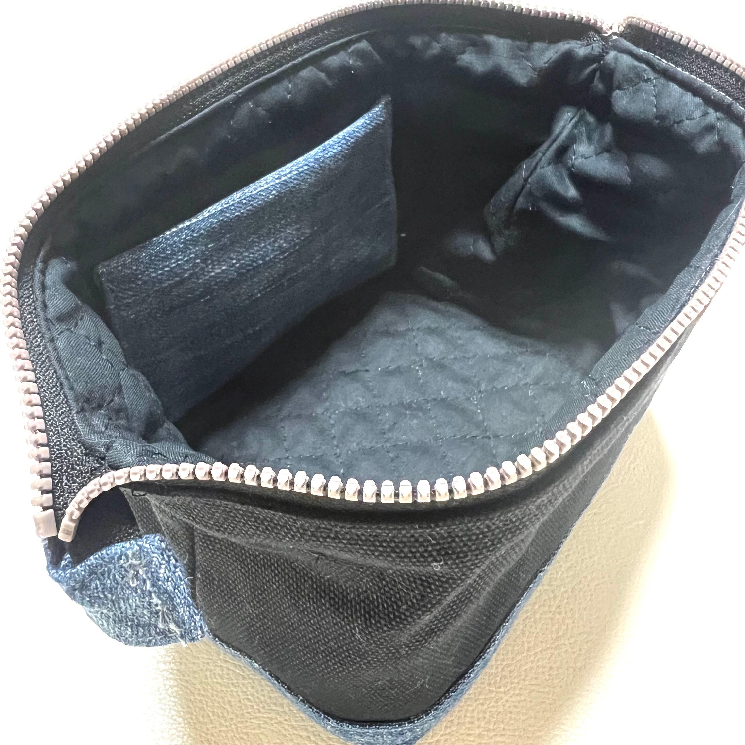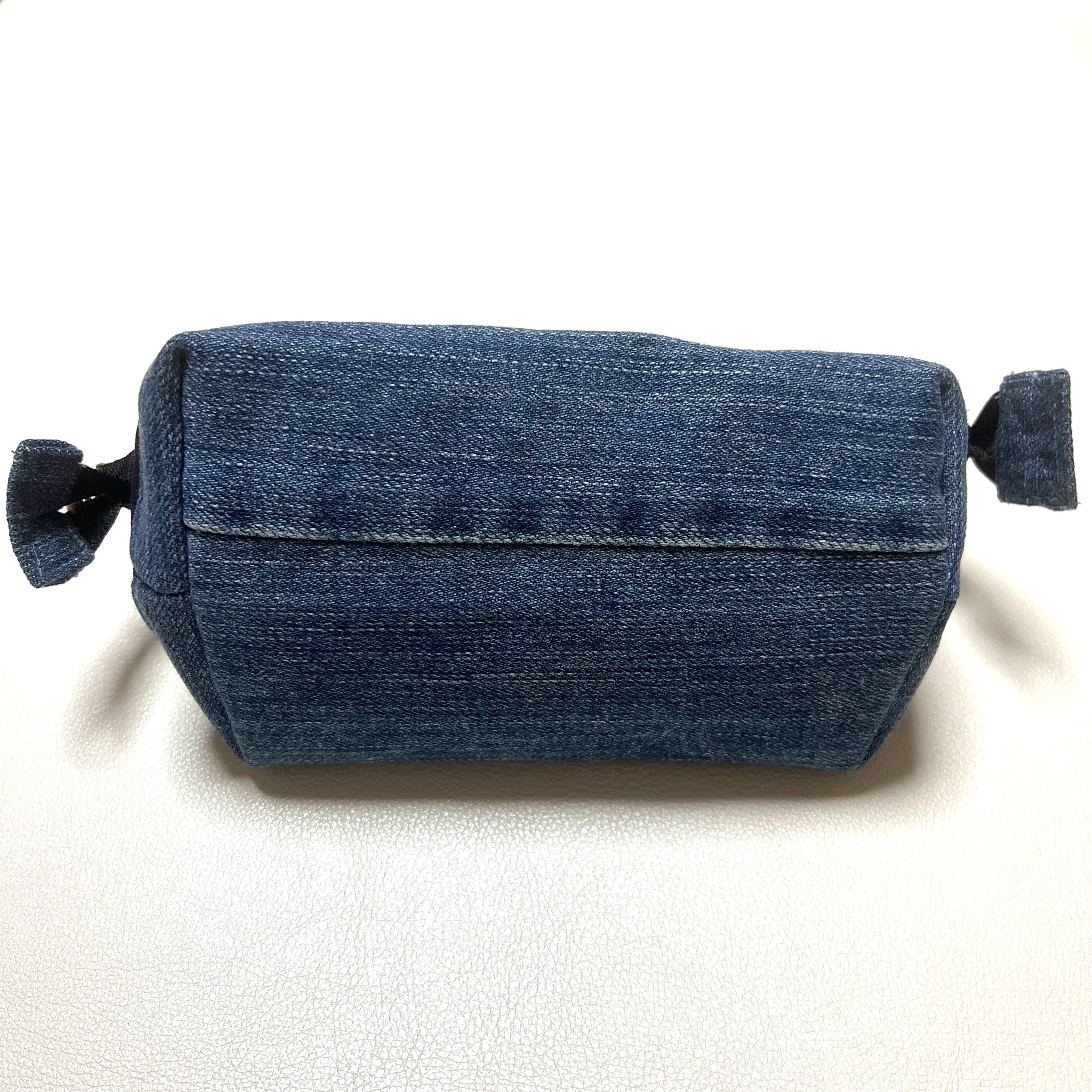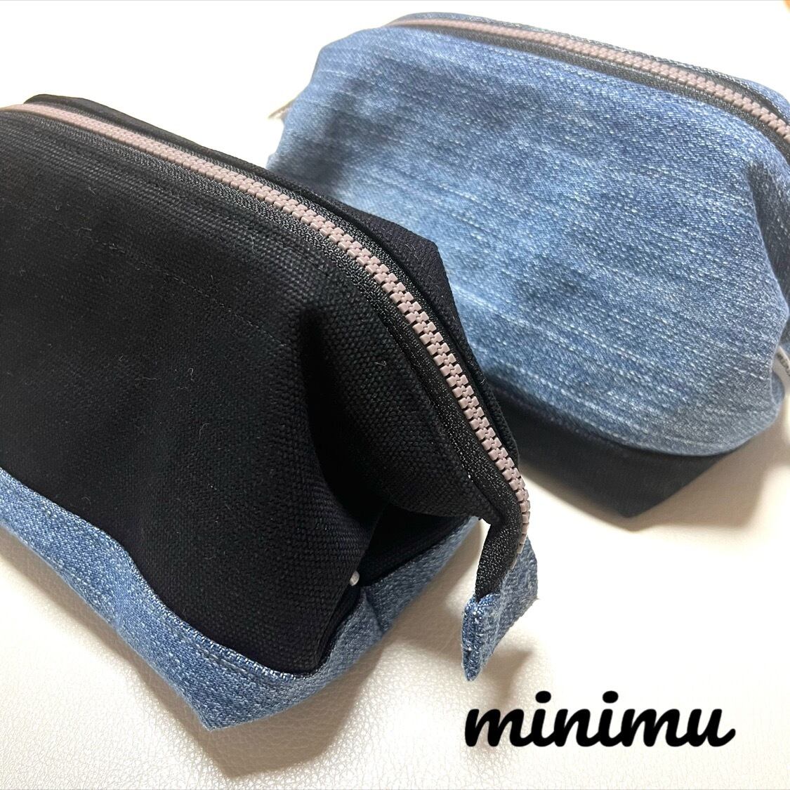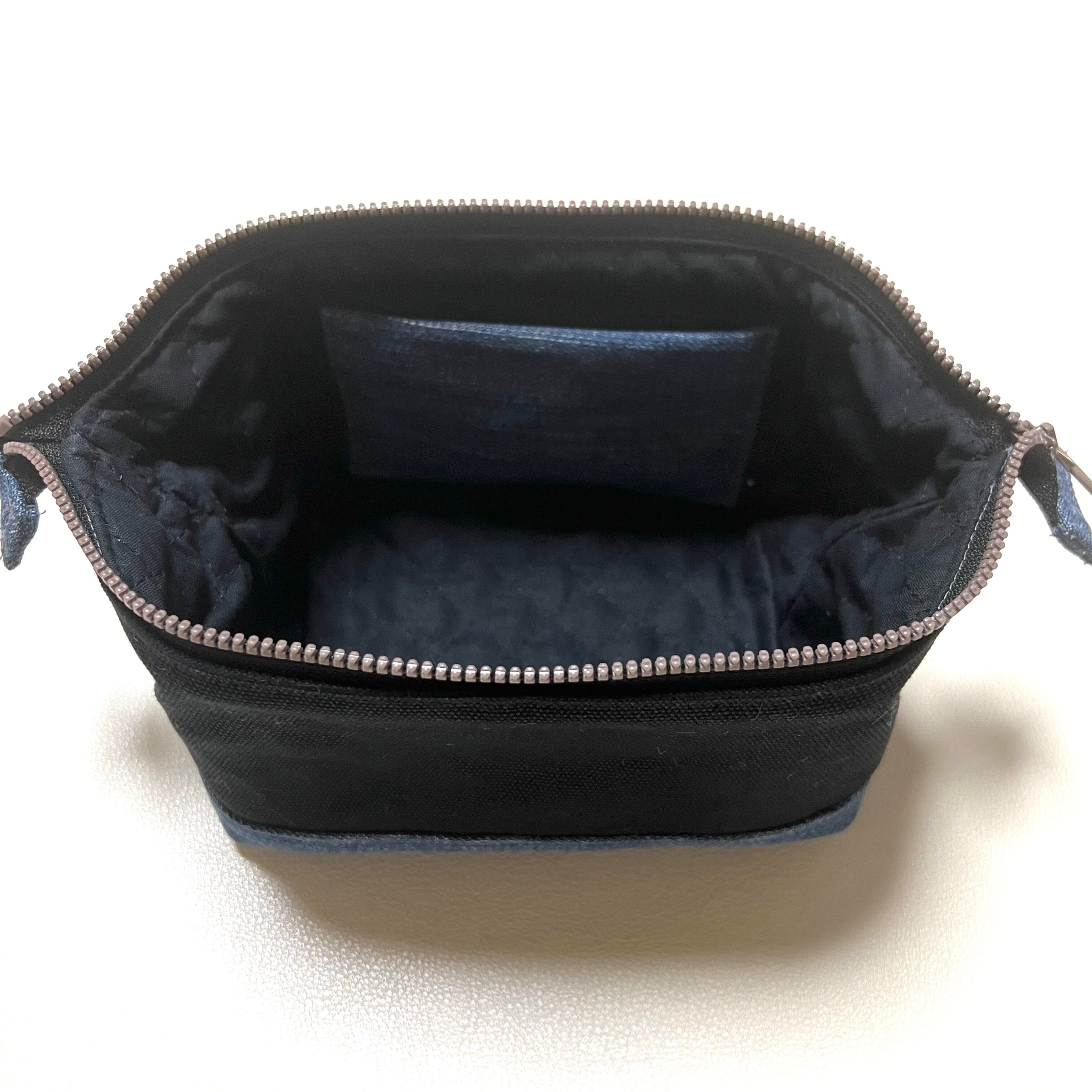 ユーズドのジーンズをリメイクし、帆布と合わせたワイヤーポーチです。