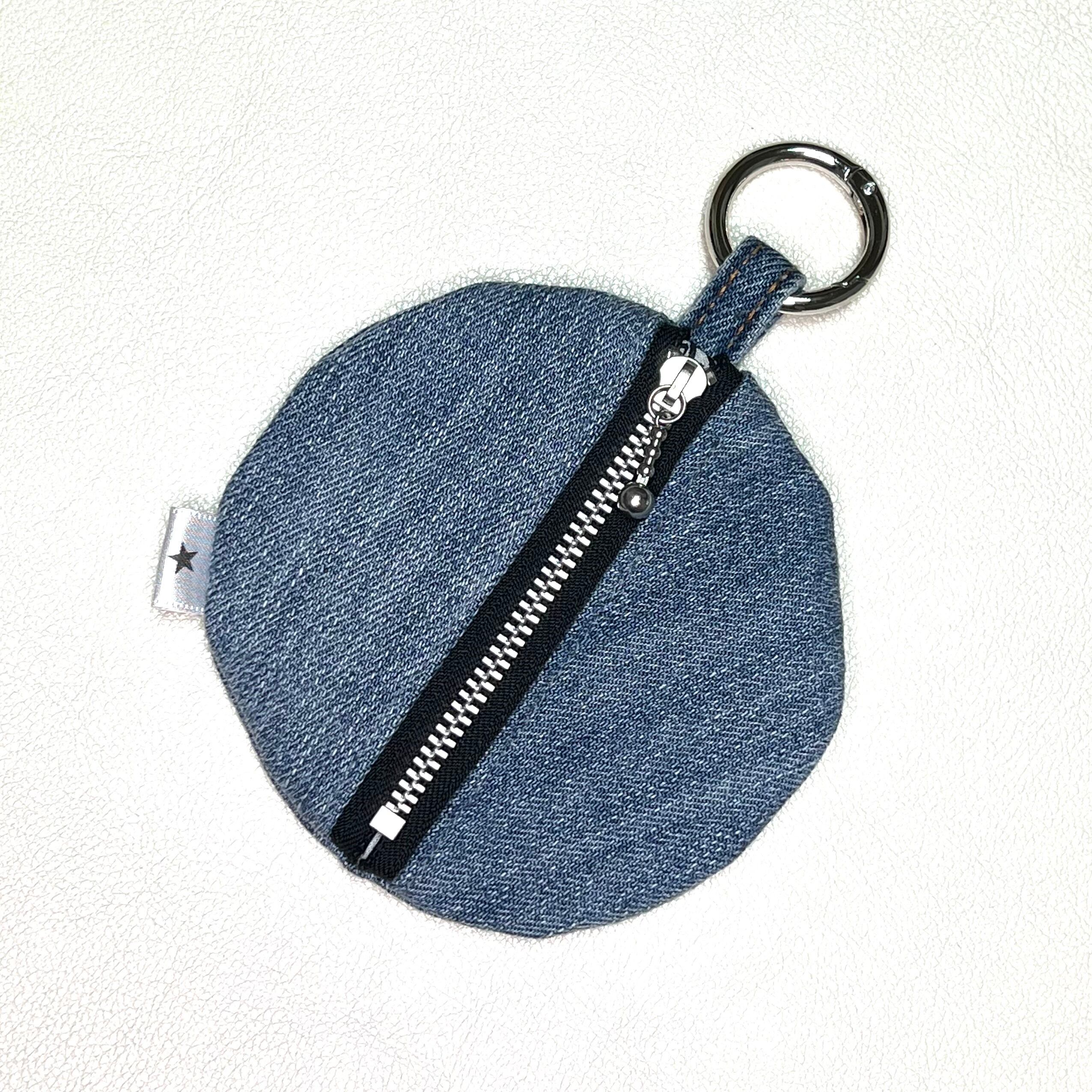 ユーズドのジーンズをリメイクしたファスナーポーチです。