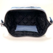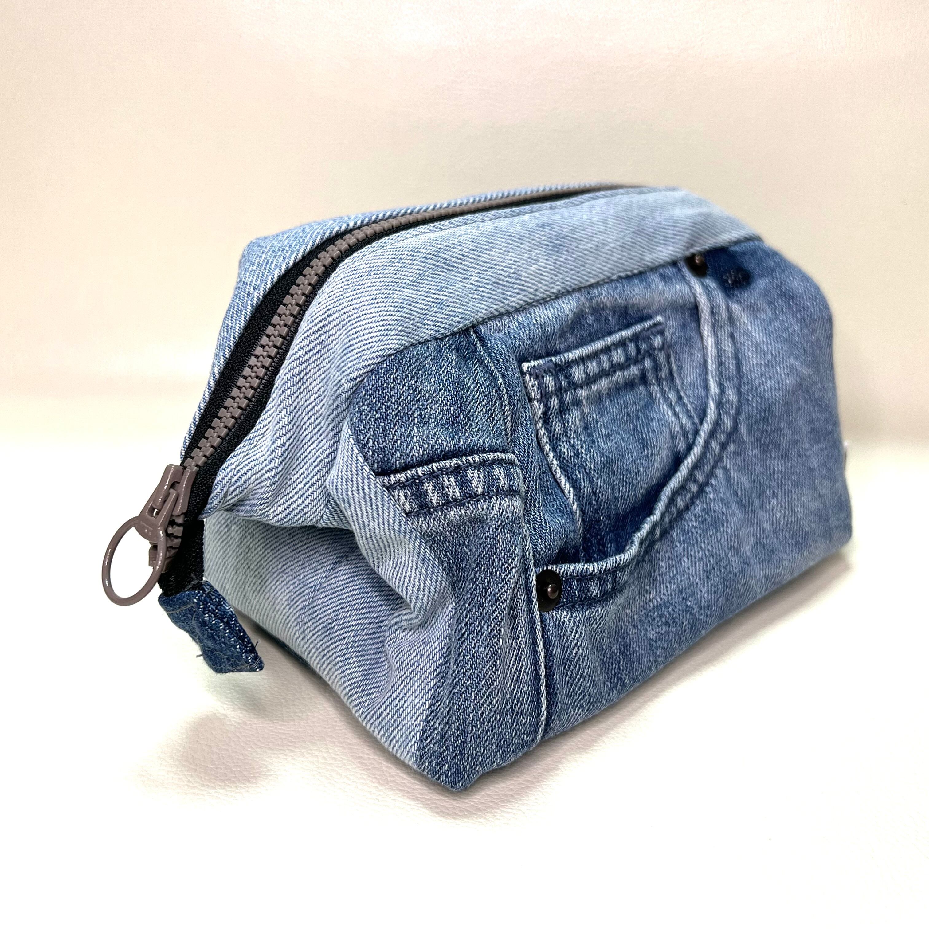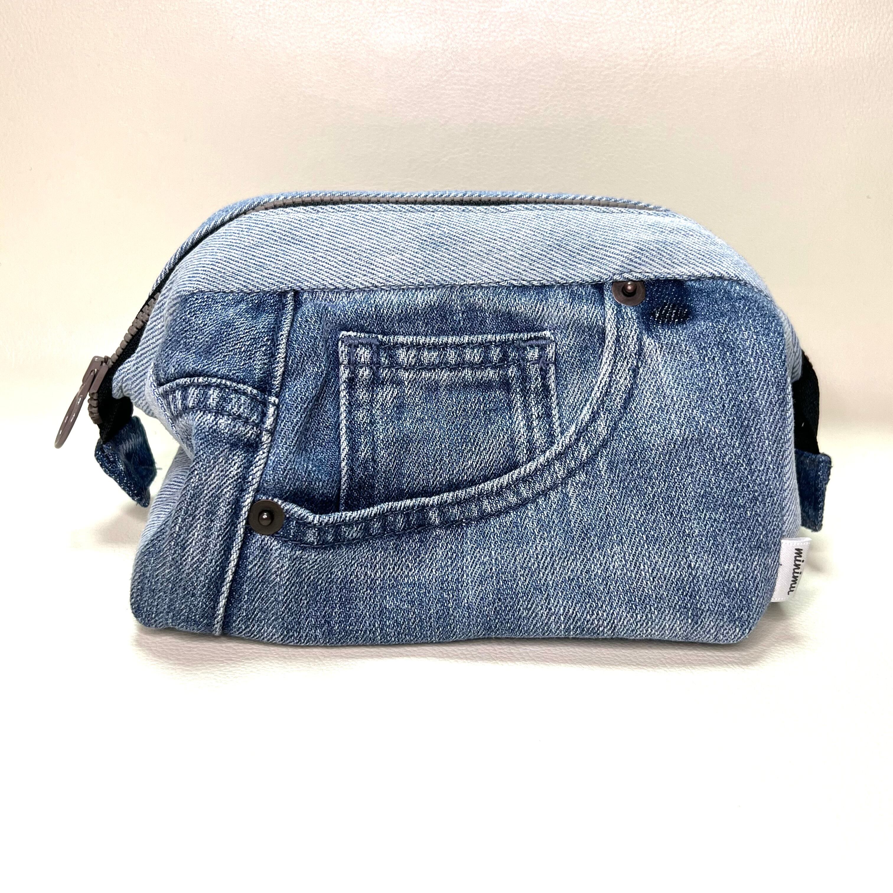 ユーズドのジーンズをリメイクしたワイヤーポーチです。