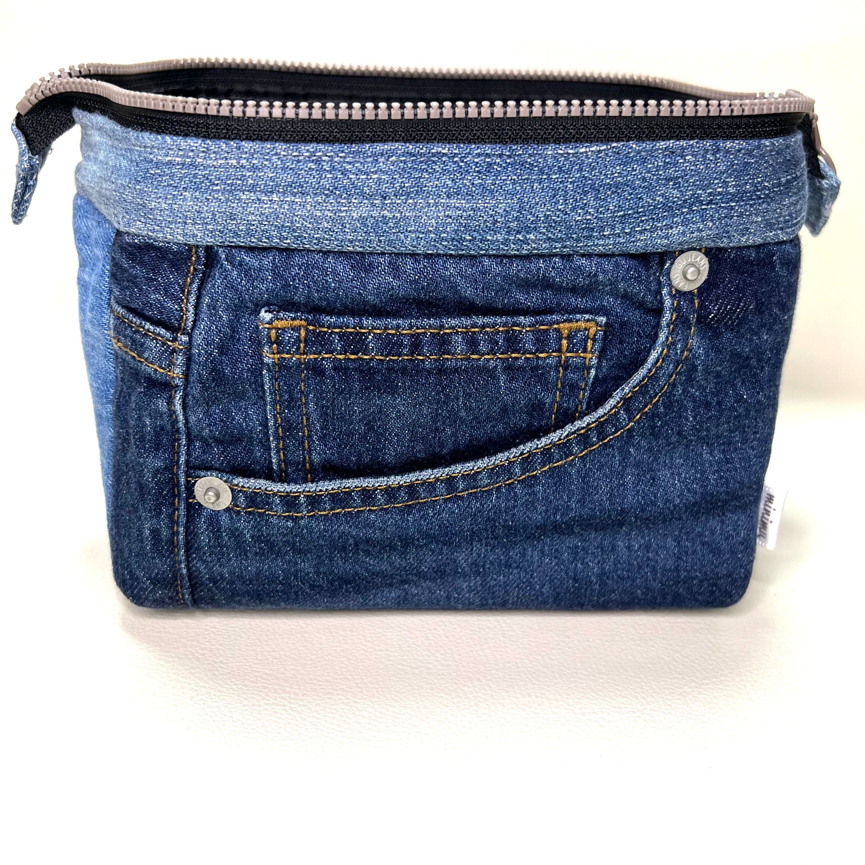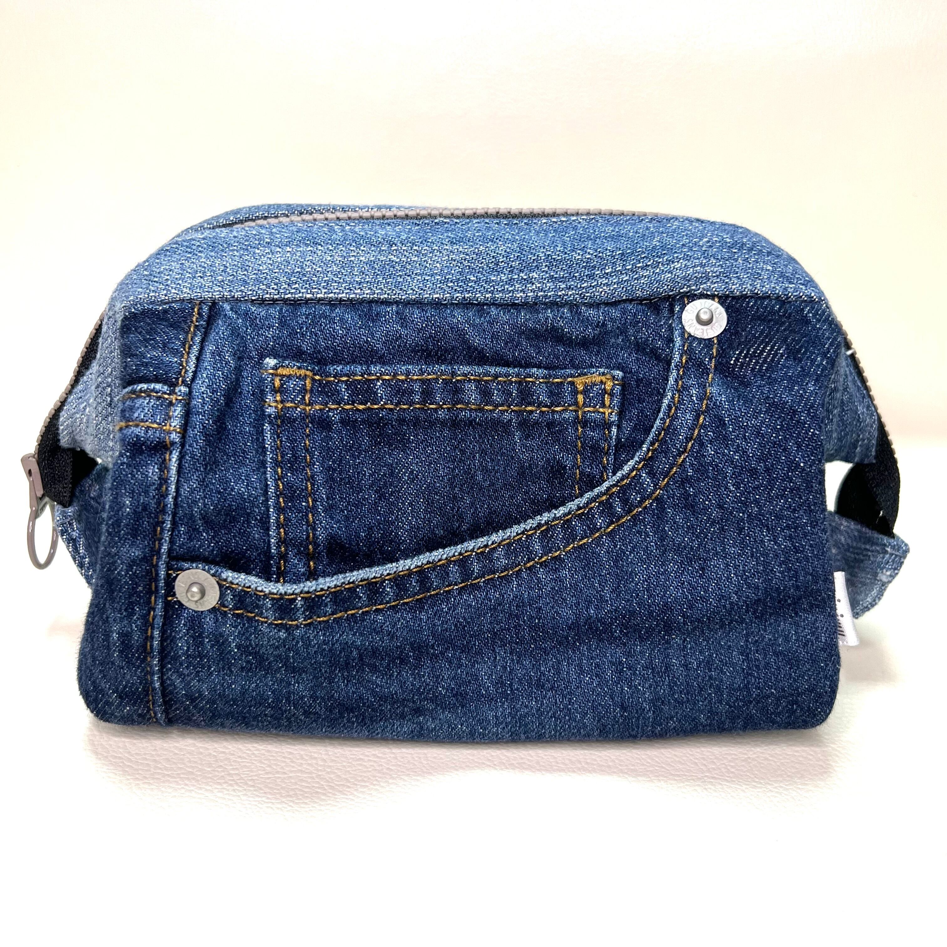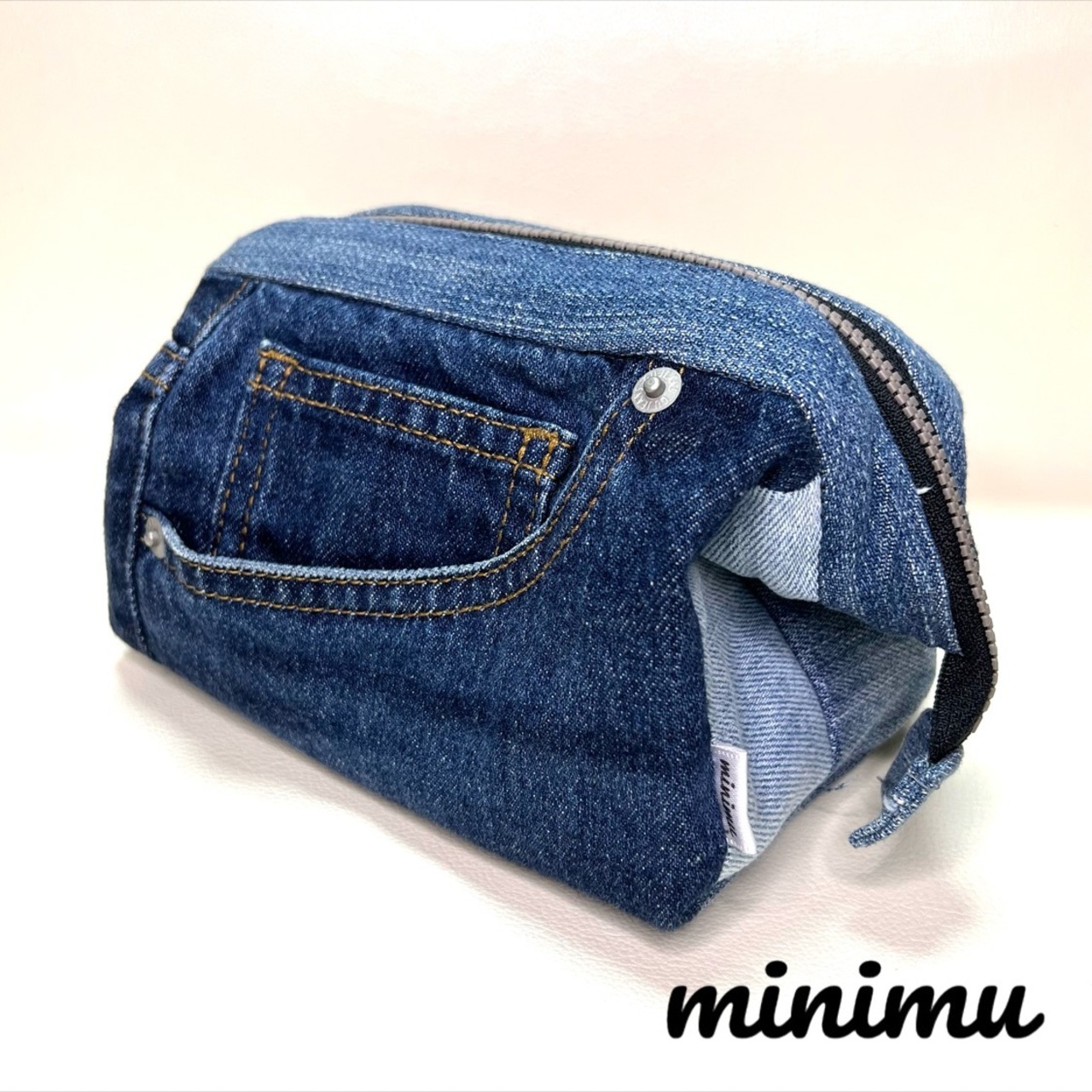 ユーズドのジーンズをリメイクしたワイヤーポーチです。