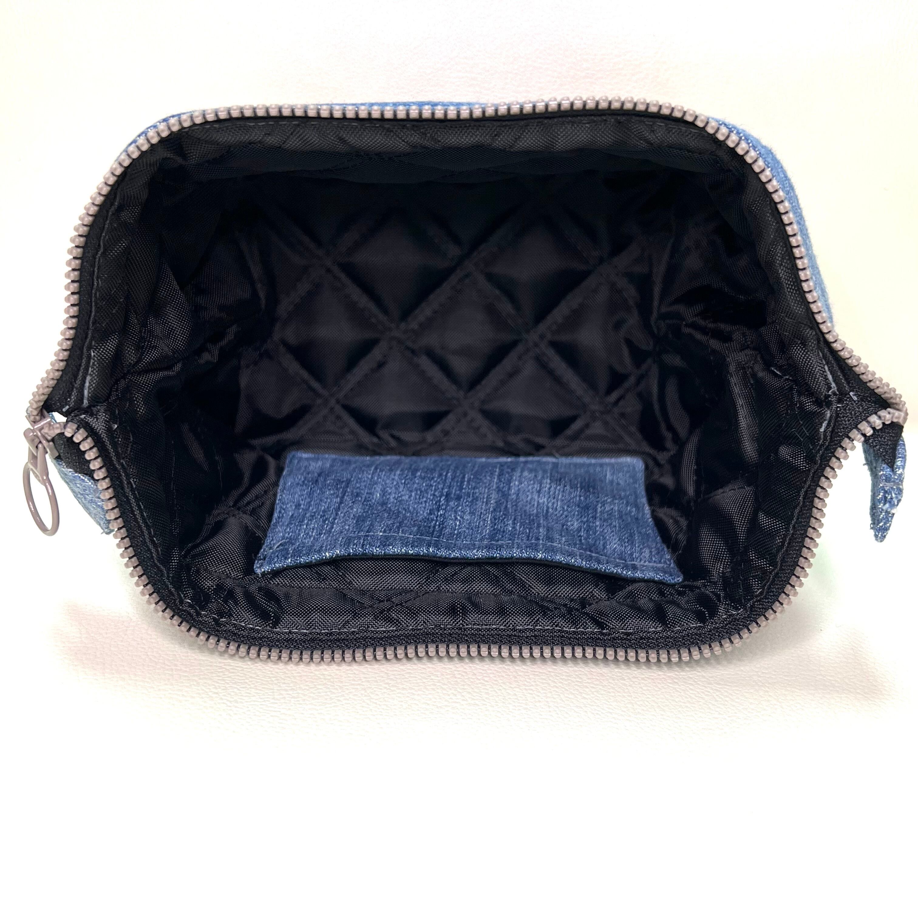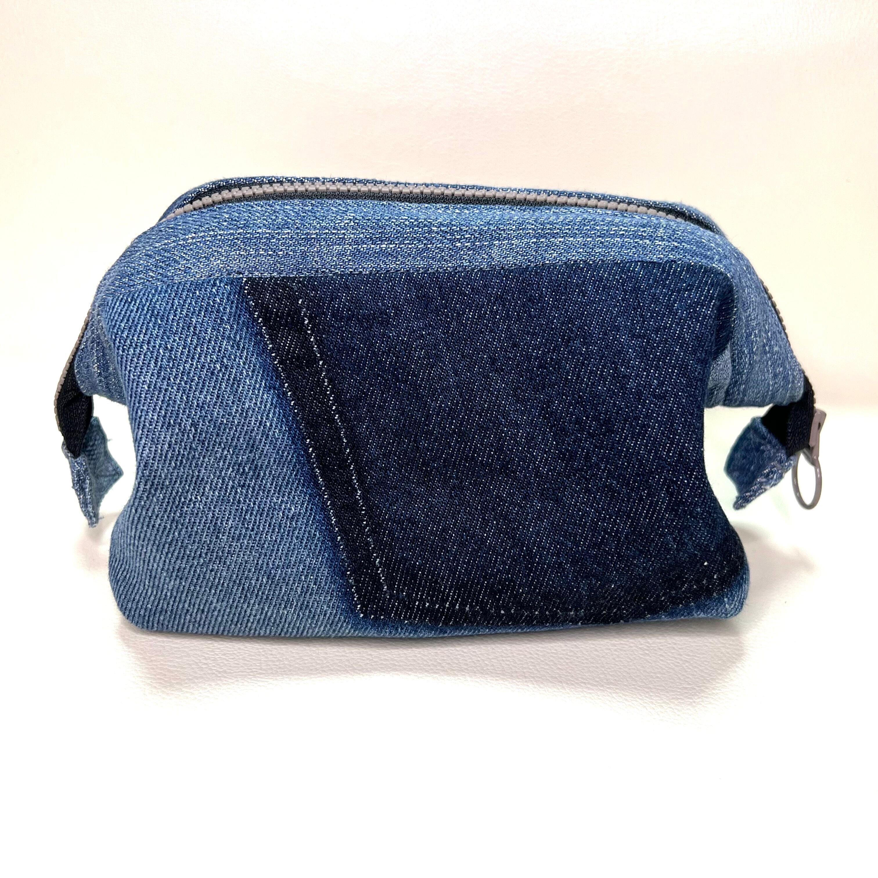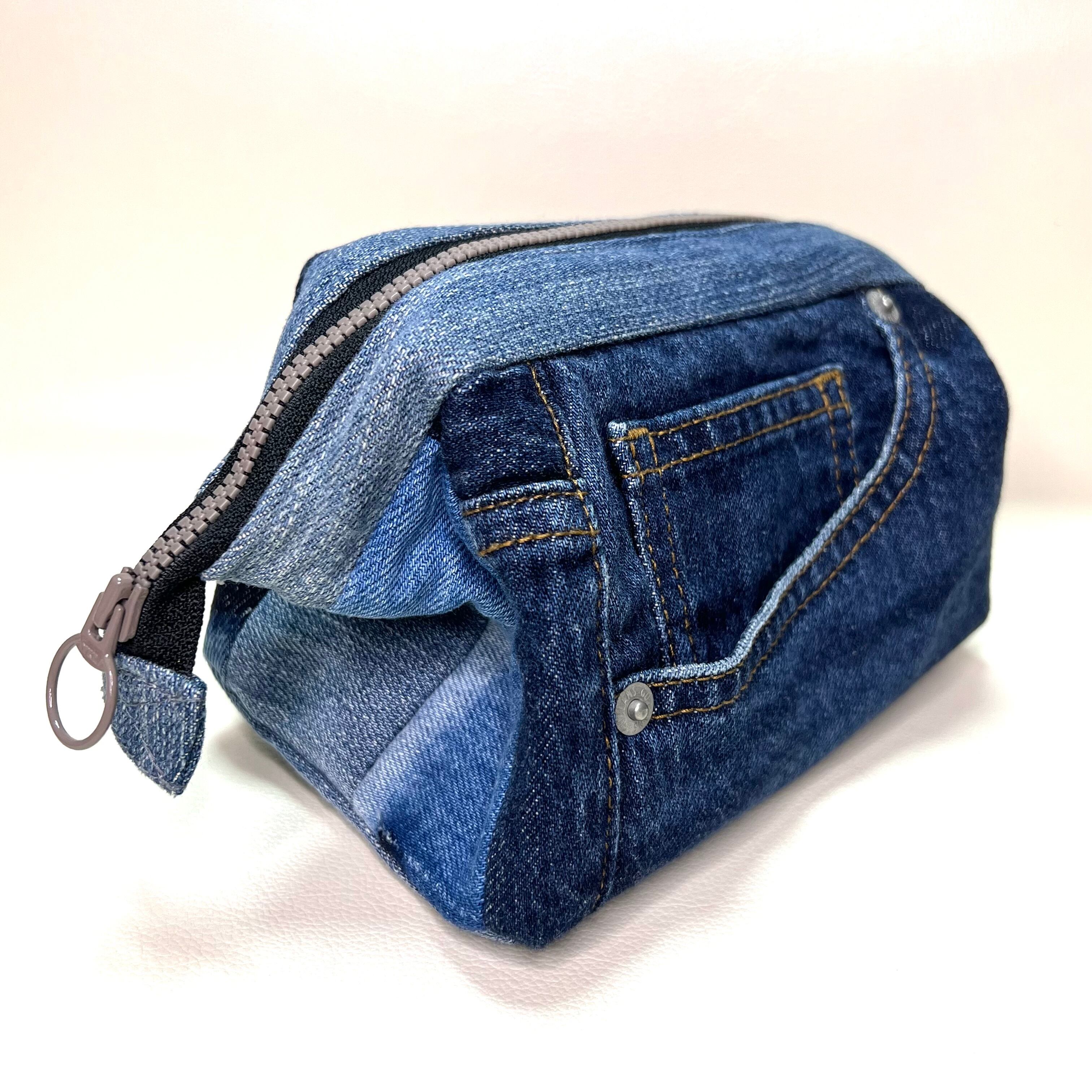 ユーズドのジーンズをリメイクしたワイヤーポーチです。
