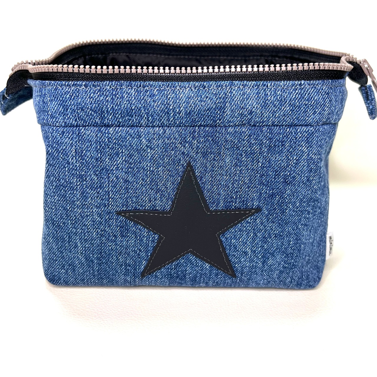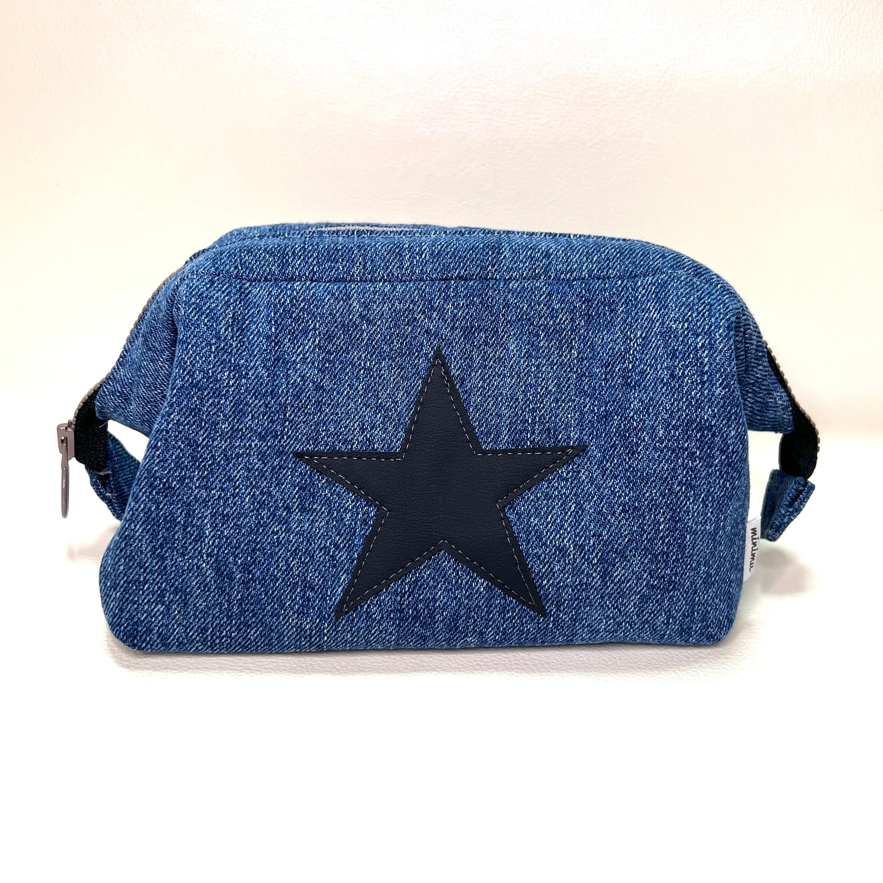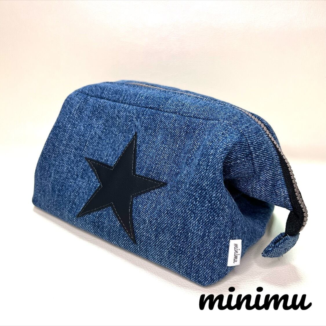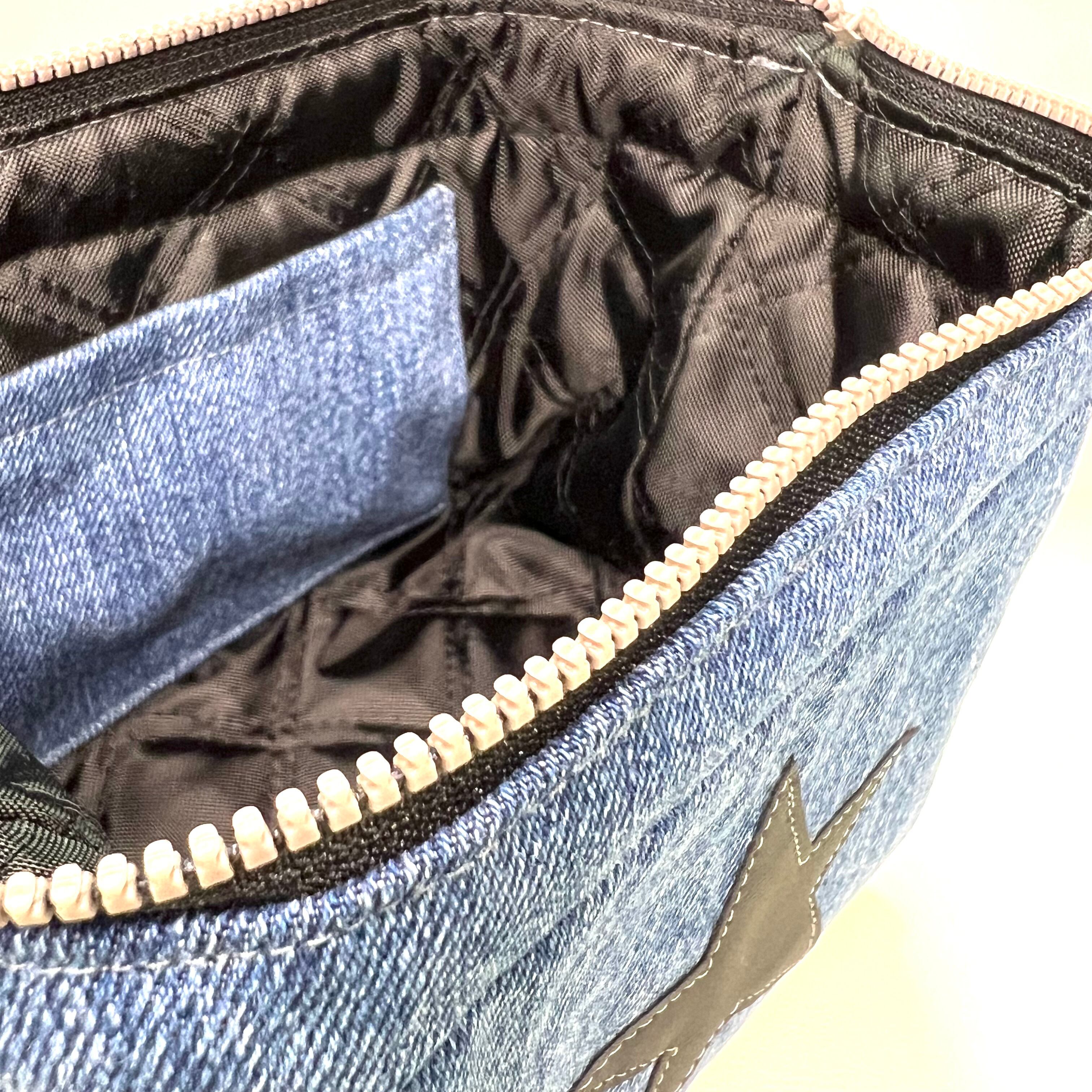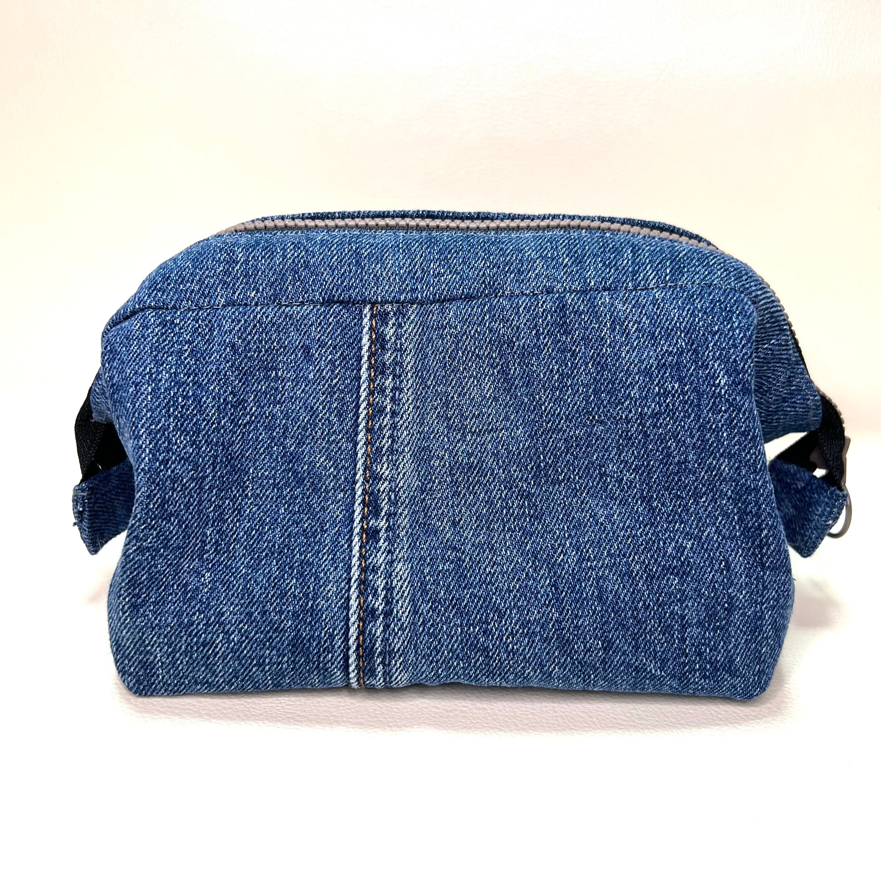 ユーズドのジーンズをリメイクしたワイヤーポーチです。