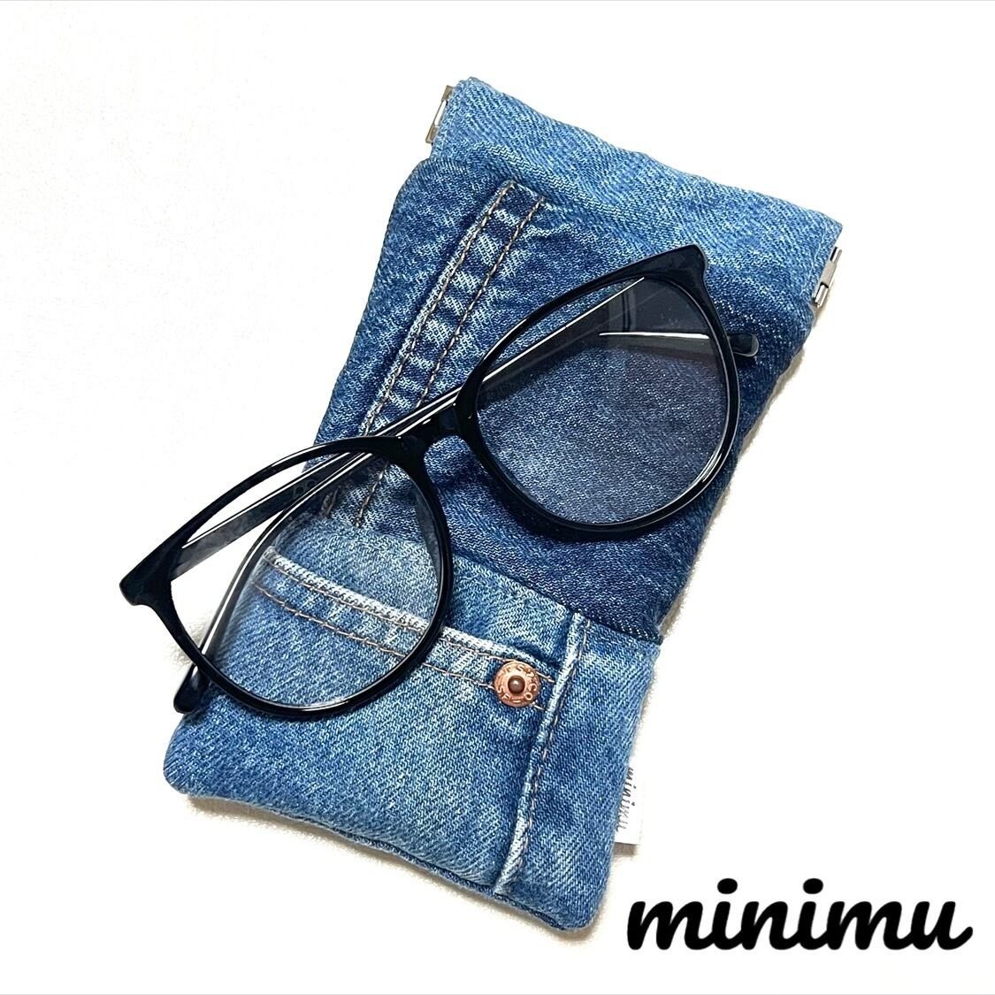 ユーズドのジーンズをリメイクしたメガネケースです。
