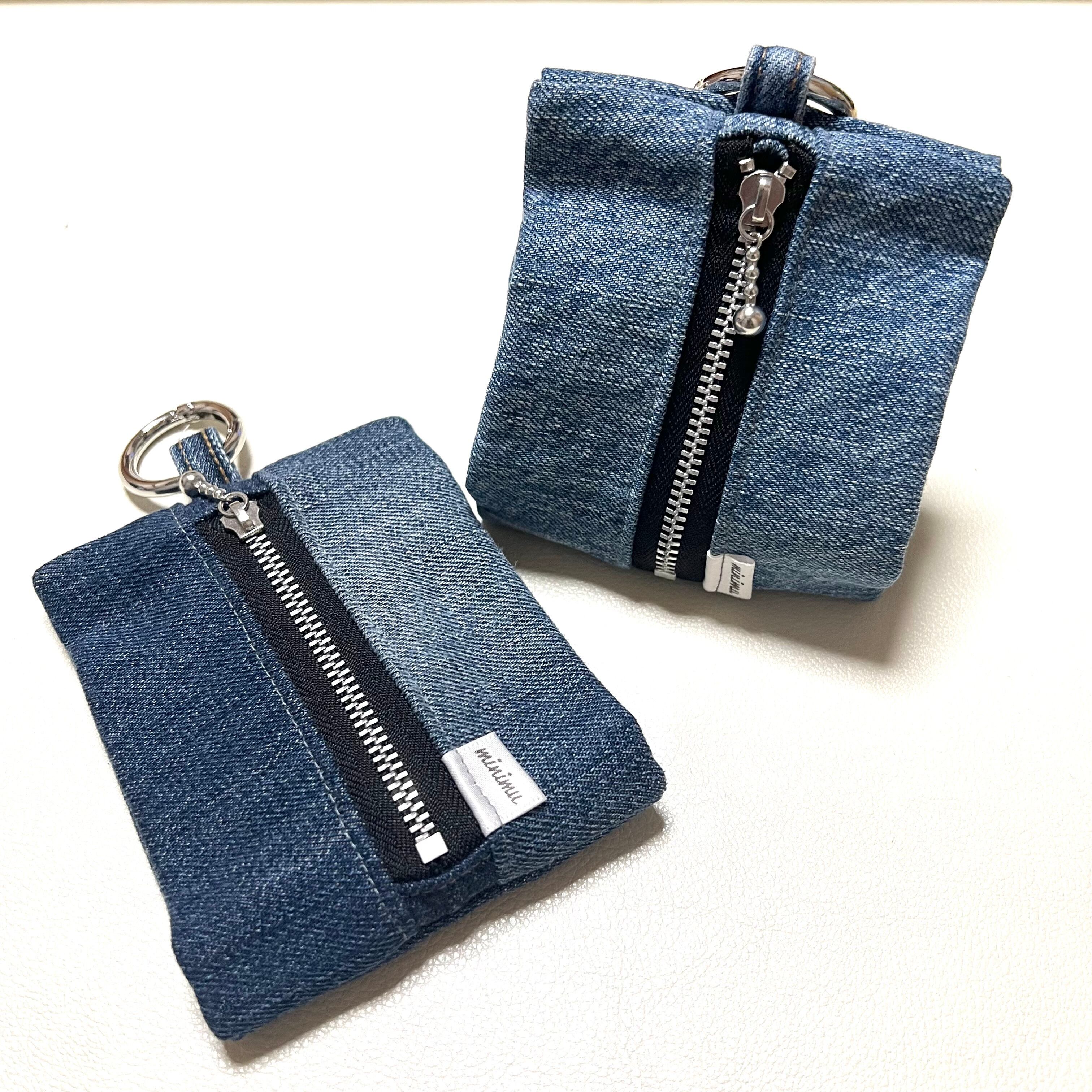 ユーズドのジーンズをリメイクしたファスナーポーチです。
